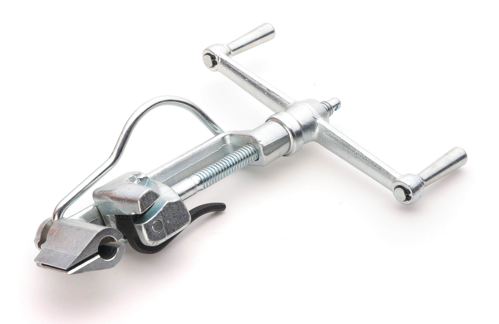 На качественных моделях между рамой и крутящимся коромыслом расположена толстая шайба, которая позволяет при полной затяжке стальной ленты, легко ослабить и открутить ручку назад.