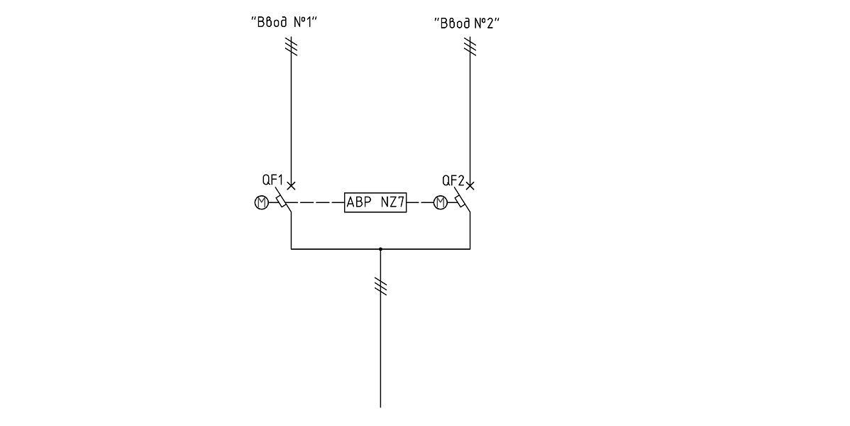 - AB1 и AB2 – двухполюсные автоматические выключатели на основном и резервном вводе.