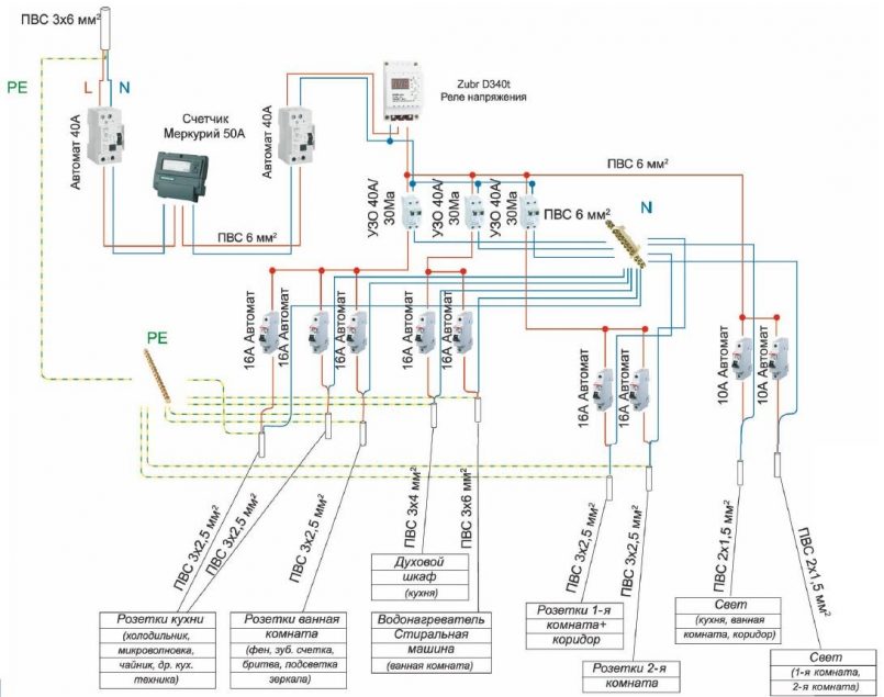 Ниже ещё раз представлена принципиальная схема моего щитка:
