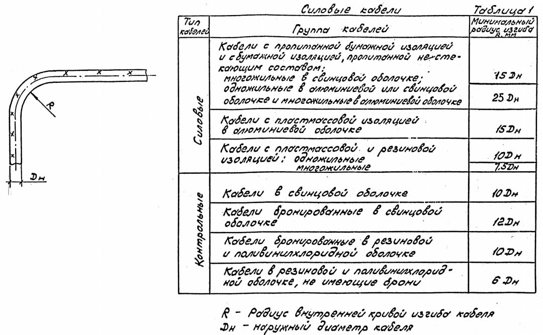 Оптимальный радиус поворота зависит от диаметра самого КЛ. Вот рекомендуемые значения:
