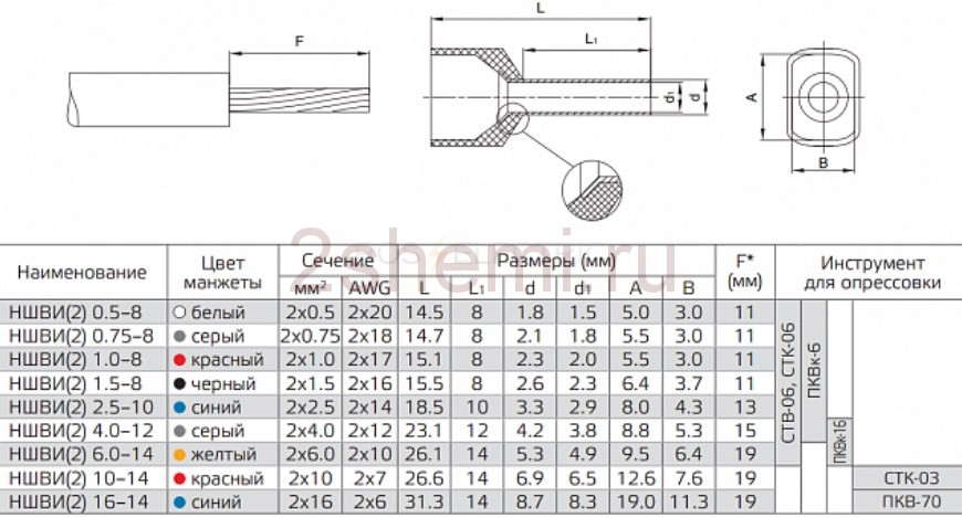 Наглядная инструкция опрессовки провода наконечником НШВИ представлена на видео: