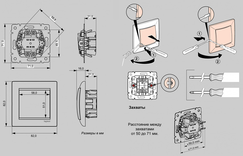 Компания Легранд занимает лидирующую позицию на рынке электротоваров. Востребованность проходных выключателей Legrand обусловлена высоким качеством исполнения изделий, простотой монтажа, удобствами в дальнейшей эксплуатации, стильным дизайном и гибкой ценовой политикой. Единственным недостатком является необходимость в подгонке установочного места. Если оно не будет совпадать с изделием, могут возникнуть трудности при его монтаже, который выполняется согласно схеме подключения проходного выключателя Легранд.