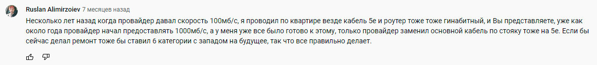 Поэтому при ремонте квартиры, что называется “с нуля”, лучше изначально заложить кабель категории CAT6 или CAT6a.