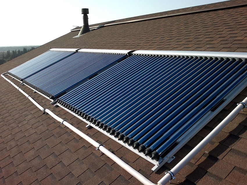 По конструктивному исполнению солнечные коллекторы могут быть плоскими или вакуумными. Последний вариант является более распространенным типом, который характеризуется простотой монтажа, высокой эффективностью, способностью обеспечить необходимым количеством тепла весь дом. Вакуумный солнечный коллектор для отопления дома, цена которого превышает стоимость плоского изделия, представлен сложной конструкцией, которую можно использовать для полноценного обогрева помещения и нагрева воды в любой сезон года.