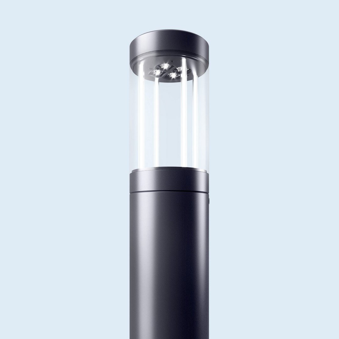 - Светильники-столбы. Как правило, это более высокие модели с высотой ножки от 1,5 метров и выше. Они тоже могут устанавливаться грунт, но требуют уже более серьезных мер по установке — имеют большую высоту и вес. Придется делать лунку, вставлять в нее столб, засыпать грунтом и уплотнять его. Есть модели для установки на твердое покрытие — плитки, асфальта и т.д. Солнечные светильники на высоких столбах