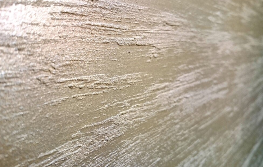 Штукатурка, в которую добавляют перламутр, выглядит на стене как шелкография. Фактурности здесь добиваются за счет добавок мелких зерен каменной крошки или целлюлозных волокон. Высокой оценки декоративности шелковая штукатурка заслужила благодаря нежным отливам готового покрытия. Блики появляются в зависимости от угла обзора, куда падает естественный или искусственный свет.