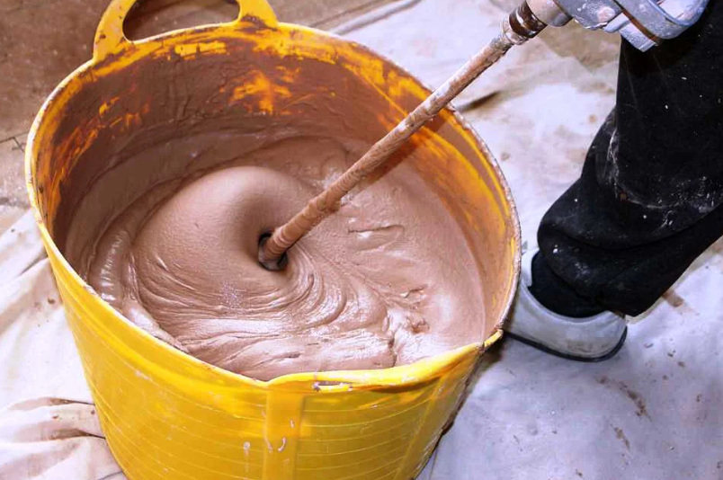 Смесь размешивают специальной насадкой «миксер». Насадка вставляется в перфоратор, в дрель или строительный миксер