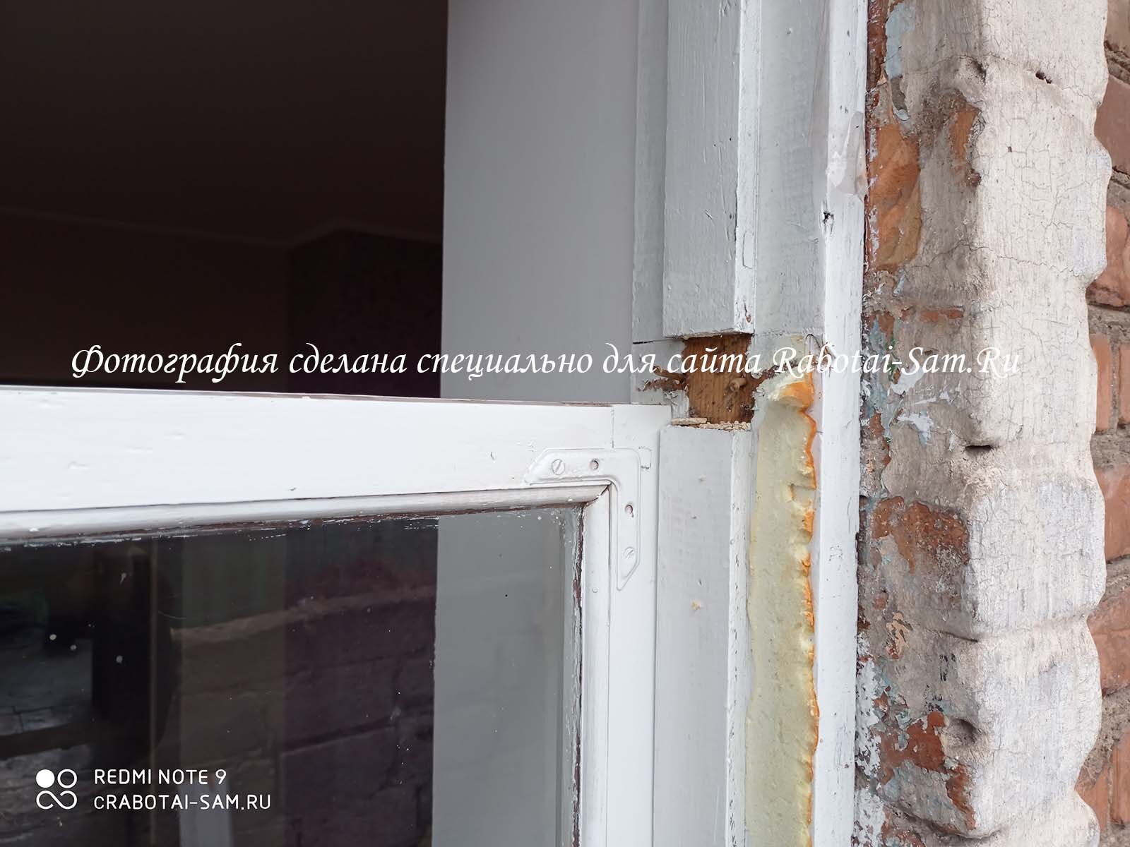 Одновременно с этим желательно заменить пену и внутри проема, под рамой. Эти работы проводятся с целью утепления окна.