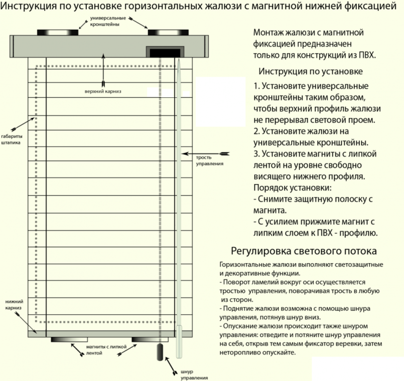 Монтаж вертикальных жалюзи осуществляется по такой схеме: