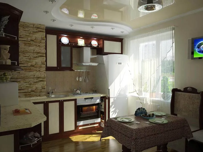 Короб может иметь вид любую геометрическую фигуру: квадрата, прямоугольника, овала, круга и т.д. Выбор формы следует делать на основании интерьера, который будет находиться в этой комнате.
