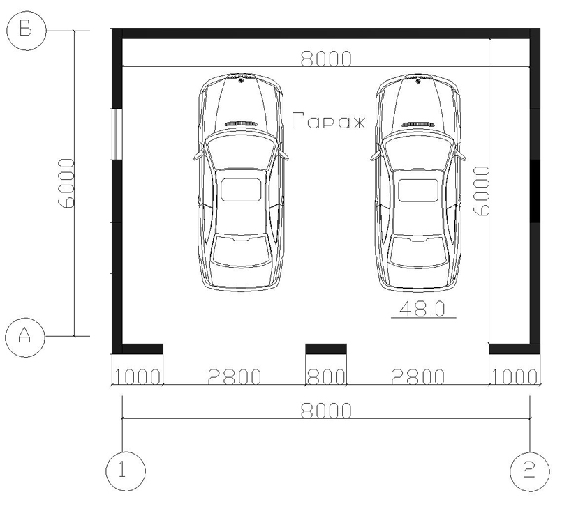Размеры гаража на 2 автомобиля