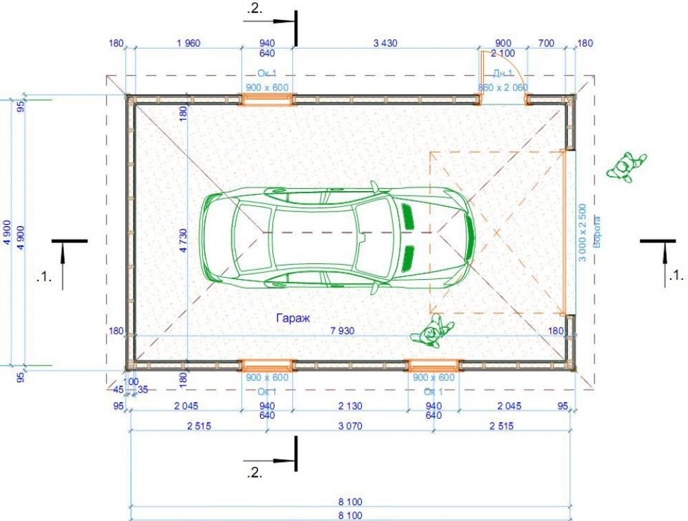 Чертеж гаража на 1 автомобиль.