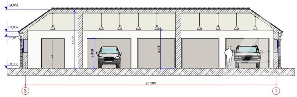 Соответственно, для грузового транспорта параметры гаража будут увеличиваться в расчетах, в зависимости от увеличения габаритов автомобиля.