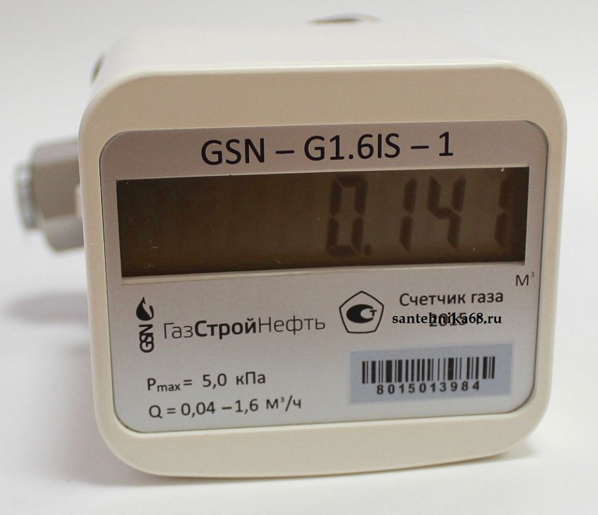 От количества потребителей и видов установленных газовых приборов зависит объем использованного газа. При условиях размещения в доме только колонки и газовой печки вполне достаточно счетчика с пропускной способностью до 2,5 м³/ч. Стоит выбирать счетные приборы с маркировкой G-1,6. Если отопление в доме тоже газовое, подойдет счетчик G-4 или G-6.