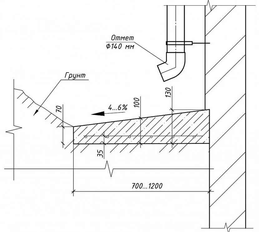 Оптимальный угол наклона отмостки Источник cokr54.ru