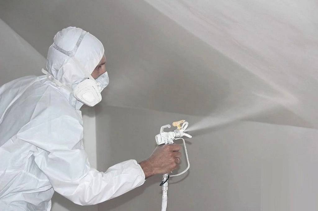 Они наносятся на потолок кистью или опрыскивателем, а после высыхания счищаются вместе со старым покрытием подручным инструментом.