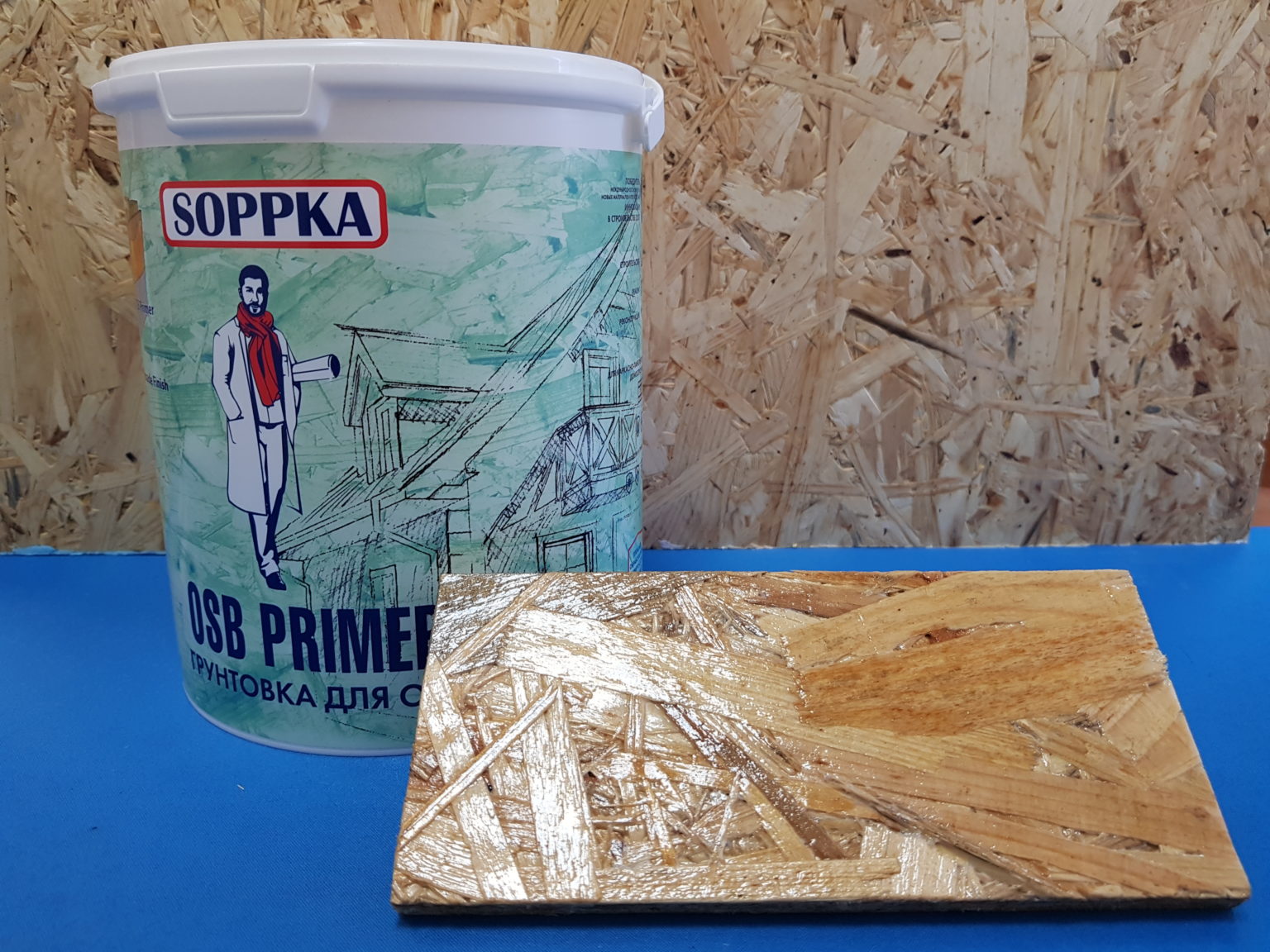 - Уменьшает влагопоглощение. Мы уже учли то, что ориентированно-стружечная плита менее подвержена гидрофобности, чем обычное дерево. Но грунт позволяет ещё более сократить этот показатель.