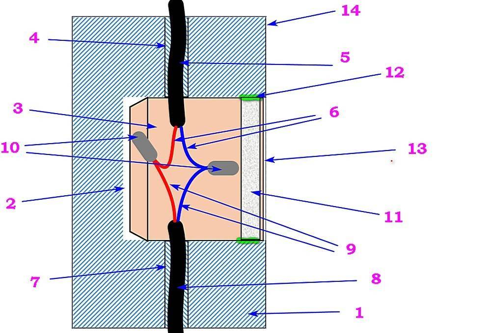 Прокладывание нового кабеля в штробе основания или вывод от распределительной коробки считается надежным с точки зрения безопасности и эксплуатации, методом. Однако для проведения работ необходимо время и трудовые резервы. Последовательность: