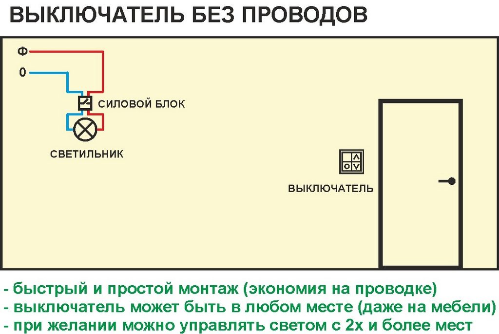 Приемник обычно оснащен 2—4 проводами, которые выходят из его корпуса. В инструкции будет подробно описано, какой из этих проводов — вход. Другие — выходы (например, в двойном выключателе выходов будет 2). Для установки приемника вам потребуется разомкнуть фазу, подающую питание на прибор освещения, и подключить его к цепи, соблюдая последовательность.
