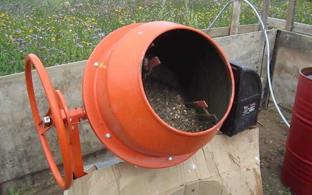 Далее подбирается аппарат для перемешивания. Исходя из емкости барабана, подбирают массу насыпаемых в него материалов: она составляет менее двух третей объема. Пустое место внутри предотвращает перегруз мотора и дает возможность равномерного, качественного замеса.