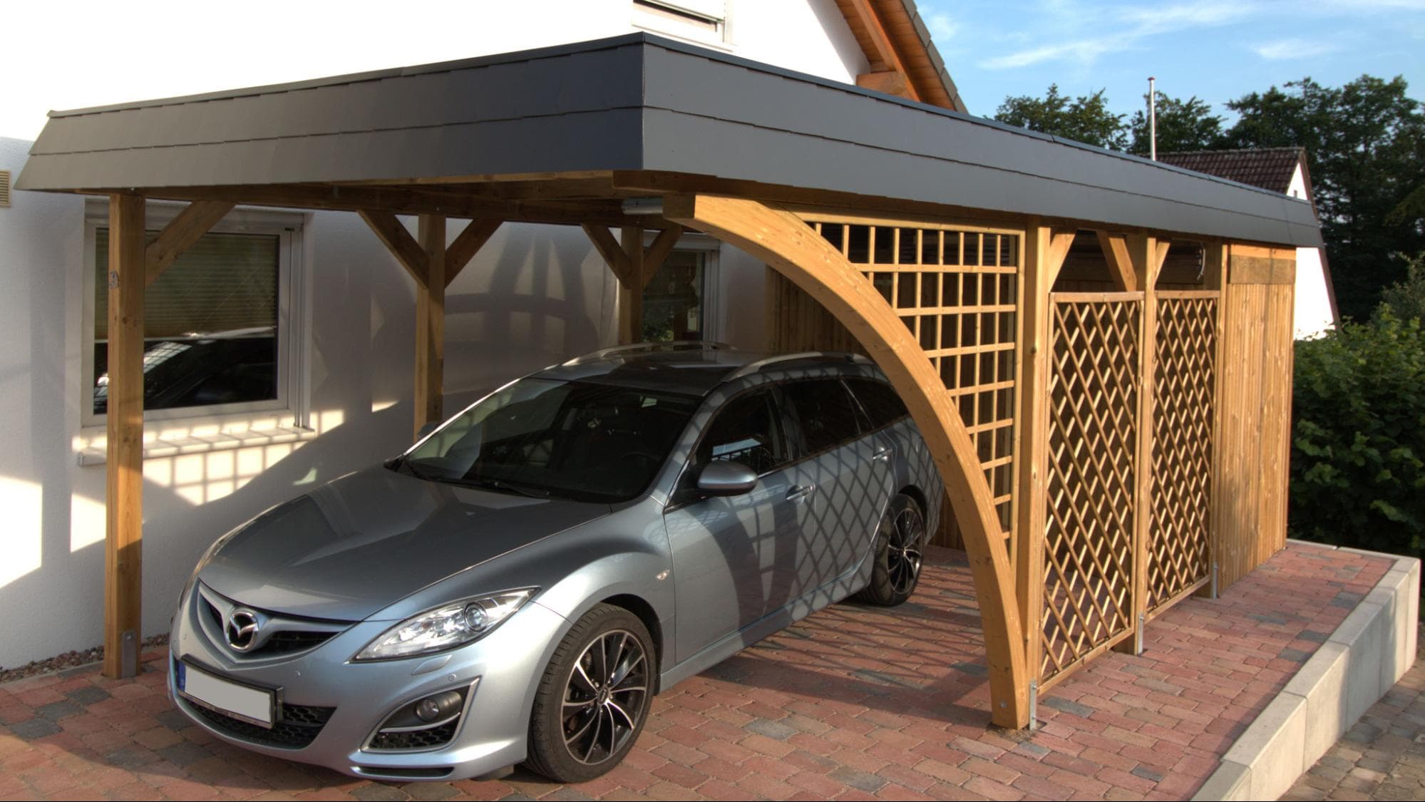 Деревянный навес для машины Источник otkatnyevorota-mo.ru