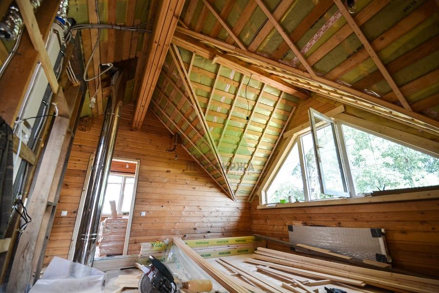 Мансарда из вагонкиРассматриваемый отделочный материал может быть изготовлен из самого различного сырья, начиная с пластика, заканчивая различными породами древесины. Чаще всего для внутренней отделки домов используют вагонку из липы или сосны