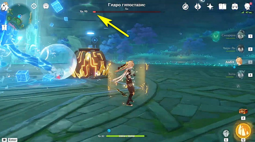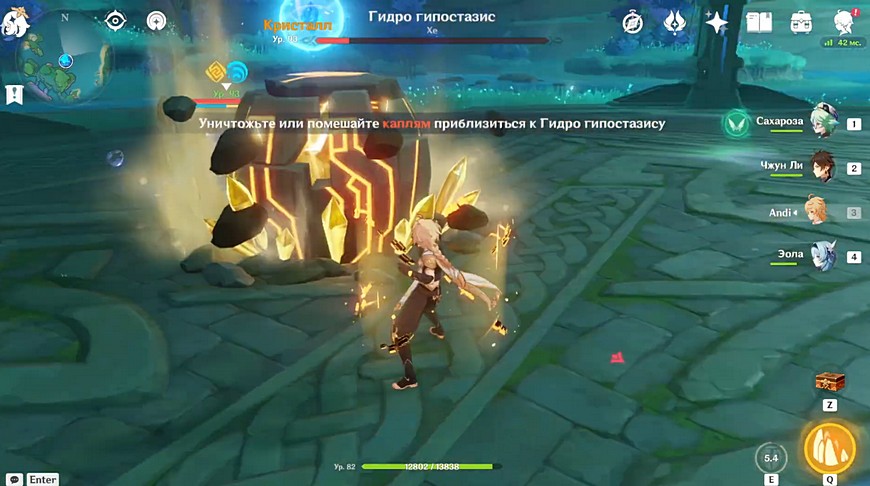 Первым делом отправляемся к Гидро Гипостазису по имени Хе. Он обитает в одной из нижних пещер острова Ватацуми региона Инадзума.