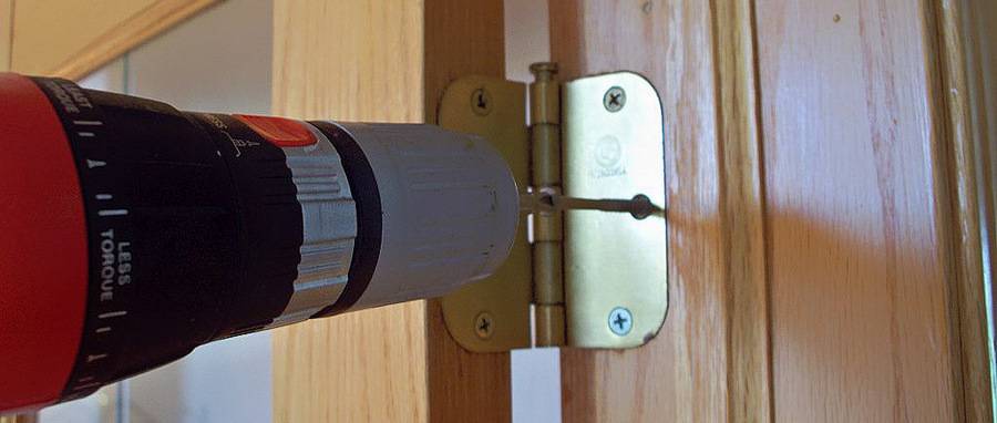 Иногда участок поверхности, где крепятся петли, слишком изношен, и с этим уже ничего не поделаешь. В этом случае петли могут быть переставлены повыше или пониже этого участка. Если же с креплением петель всё в порядке, надо установить их чуть глубже. Для проведения этой работы дверь и петли придётся снять. Где открутить петли – на дверном полотне или на коробе – лучше решить в конкретной ситуации. Затем с помощью стамески углубить пазы для петель.
