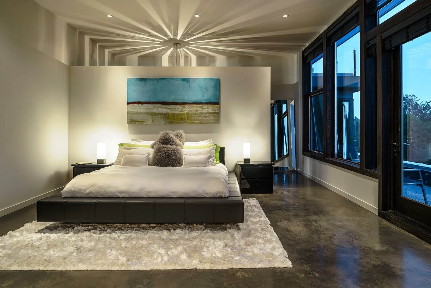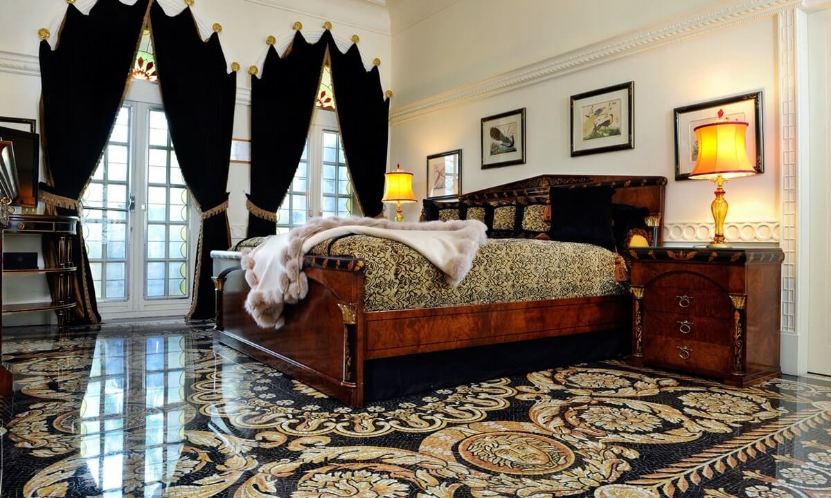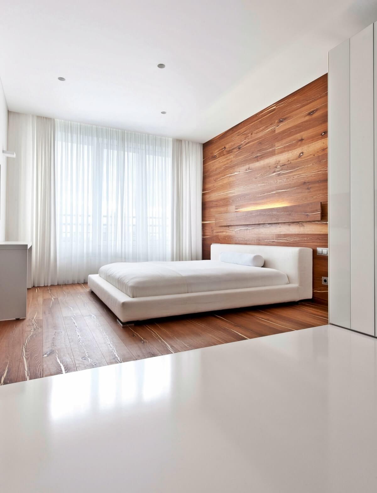 Как показывает практика, при оформлении спальни стоит воздержаться от полов с яркими рисунками. Для этой комнаты, предназначенной для отдыха, гораздо больше подойдёт однотонная, возможно даже, матовая поверхность нейтральных оттенков.
