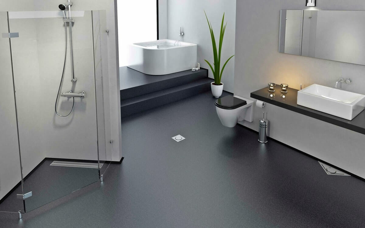 Ванная – это, как правило, помещение с недостаточной вентиляцией и, как следствие, повышенным уровнем влажности. Наливные полы здесь – просто идеальный вариант, защищающий соседей от затопления и препятствующий образованию грибкового налёта.
