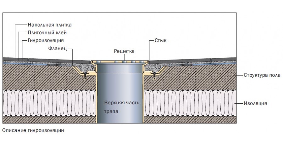 Вровень с верхом трапа заливается стяжка. Следует учесть, что в нее нужно заложить уклон, обеспечив таким образом сток воды в трап