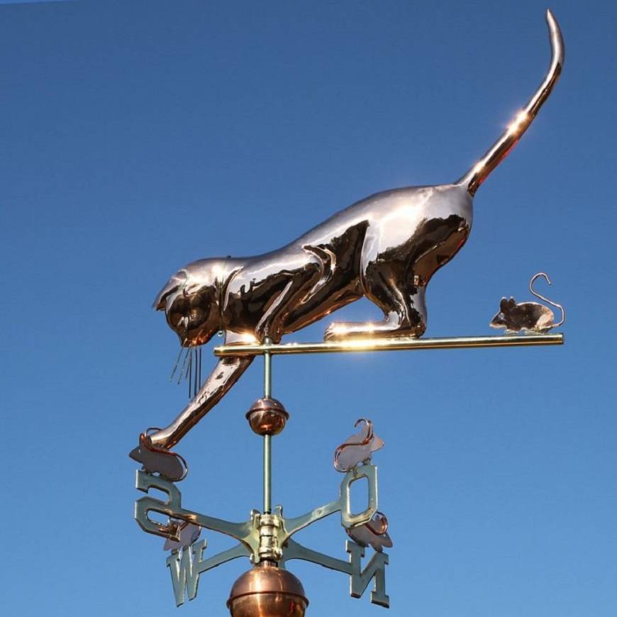 Крайне неоднозначно интерпретируется изображение кота на крыше. Выбор конструкции флюгера с такой фигурой может означать противоположные признаки. С одной стороны это образец свободолюбия, интуиции и хитрости, обратная сторона медали – любовь к отдыху и вальяжной жизни.