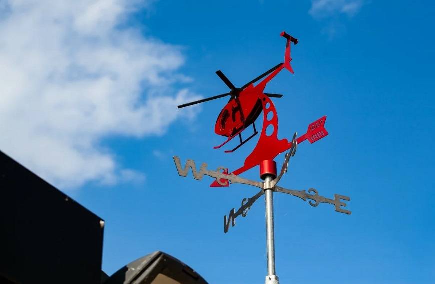 Поскольку флюгер с пропеллером — конструкция динамичная, его не устанавливают на высоких домах, так как не будет видно, как сильно вращается винт.