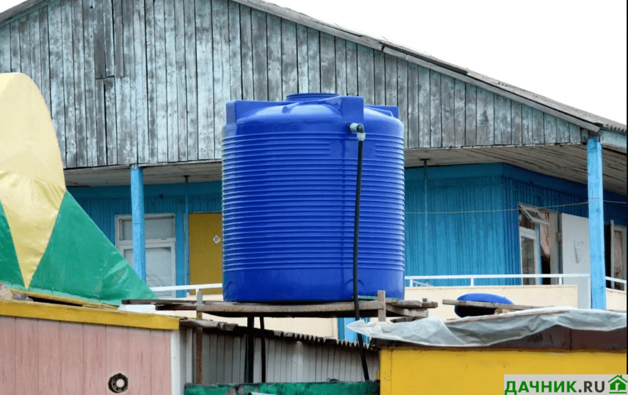Самое важное в летнем душе – это бак, который нужно крепко закрепить на крыше, например, с помощью канатной веревки. Его размер выбирается в зависимости от потребностей семьи.
