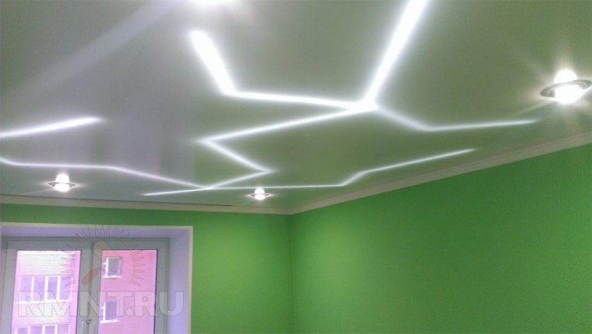 С целью равномерной подсветки светодиодную ленту монтируют в один-два ряда по внутреннему периметру короба. Внутренность самого короба должны быть покрыта материалами с высоким светоотражающим коэффициентом. Можно рассмотреть использование для этой цели обыкновенной белой глянцевой краски либо белой самоклеющейся плёнки.
