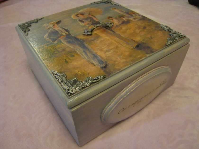 - Покрыть ларец акриловым лаком и дать просохнуть.