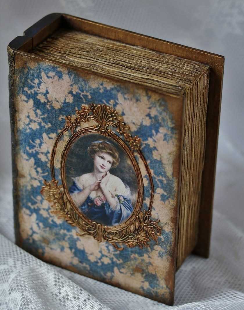 Для придания вещи состарившегося вида вместе с методикой «декупаж» применяется кракелюр. Эффект растрескивания получается за счёт нанесения специального лака на поверхность шкатулки.