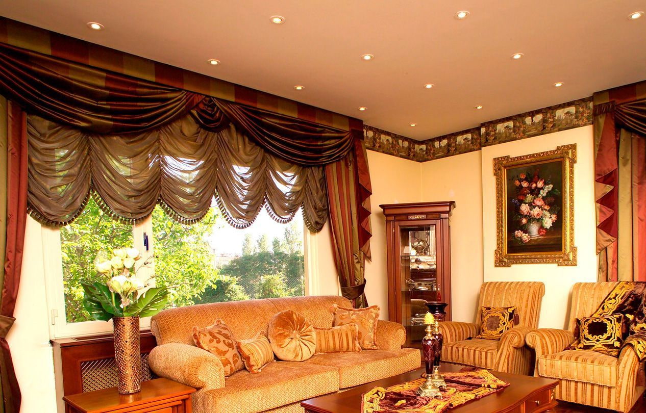 Гостиная – это всегда простор и уют, а классическая мебель подчеркивает роскошь обстановки и безупречный вкус владельца дома. Штора французская для гостиной может закрывать только окно или же всю стену с прилегающими простенками. Особенно эффектно такая модель выглядит, когда окна совмещены с выходом на террасу или в сад, в этом случае занавес должен быть из двух частей, чтобы при необходимости освободить проход.