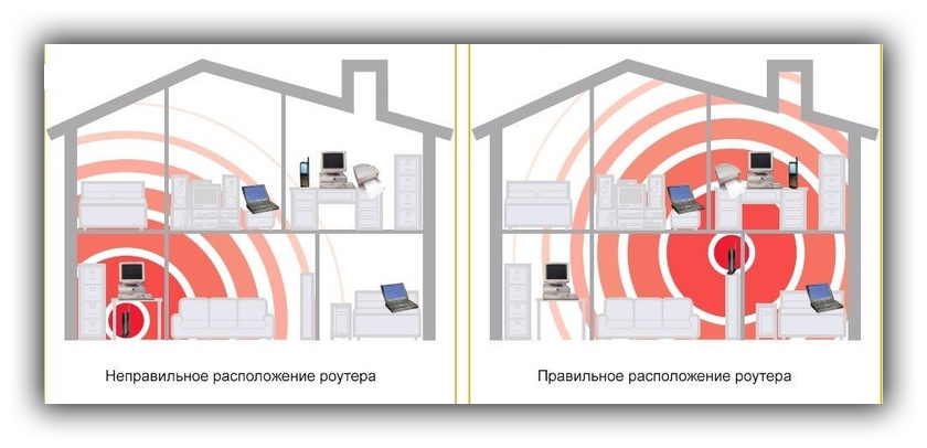 Требуется выбрать высокую точку – высота в данном случае будет являться усилителем эффективной дальности вещания; Чтобы увеличить радиус охвата конкретного помещения, можно поместить роутер в его центре