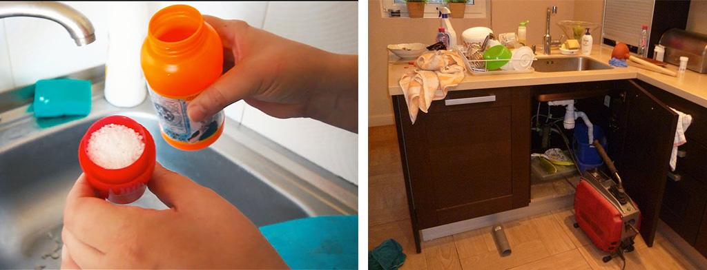 При регулярной очистке кухонных стоков и слива в ванной комнате засоры не образуются. Для этого раз в неделю используют порошковые средства на основе кислоты. Их засыпают в сток, заливают стаканом воды, как написано в инструкции, и оставляют на пару часов. Когда кислота разъест жир, трубы промывают несколько раз горячей водой.