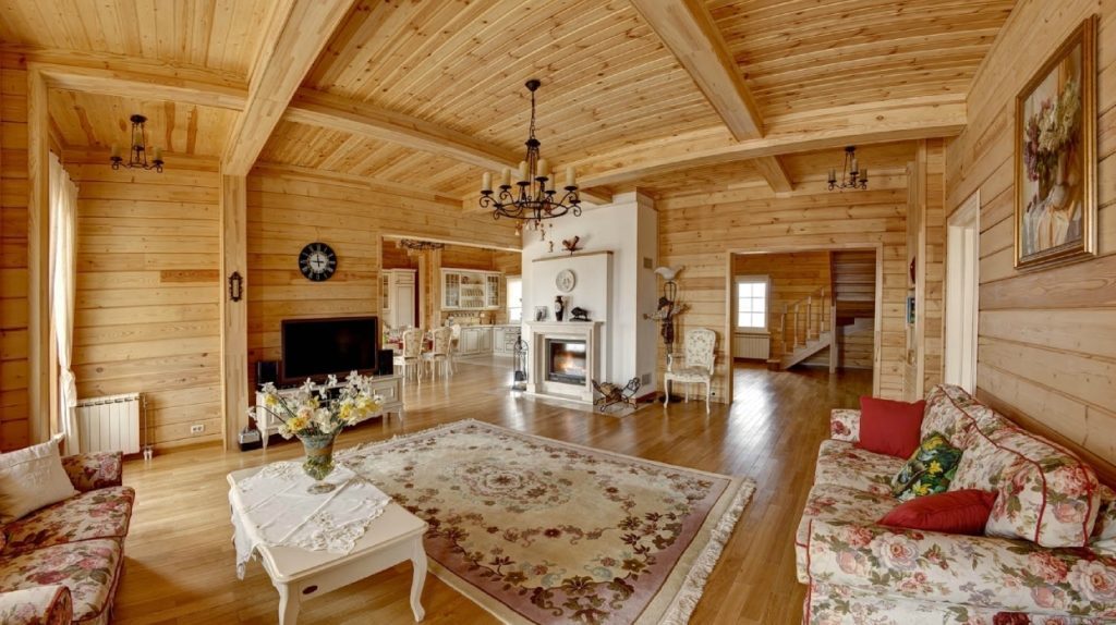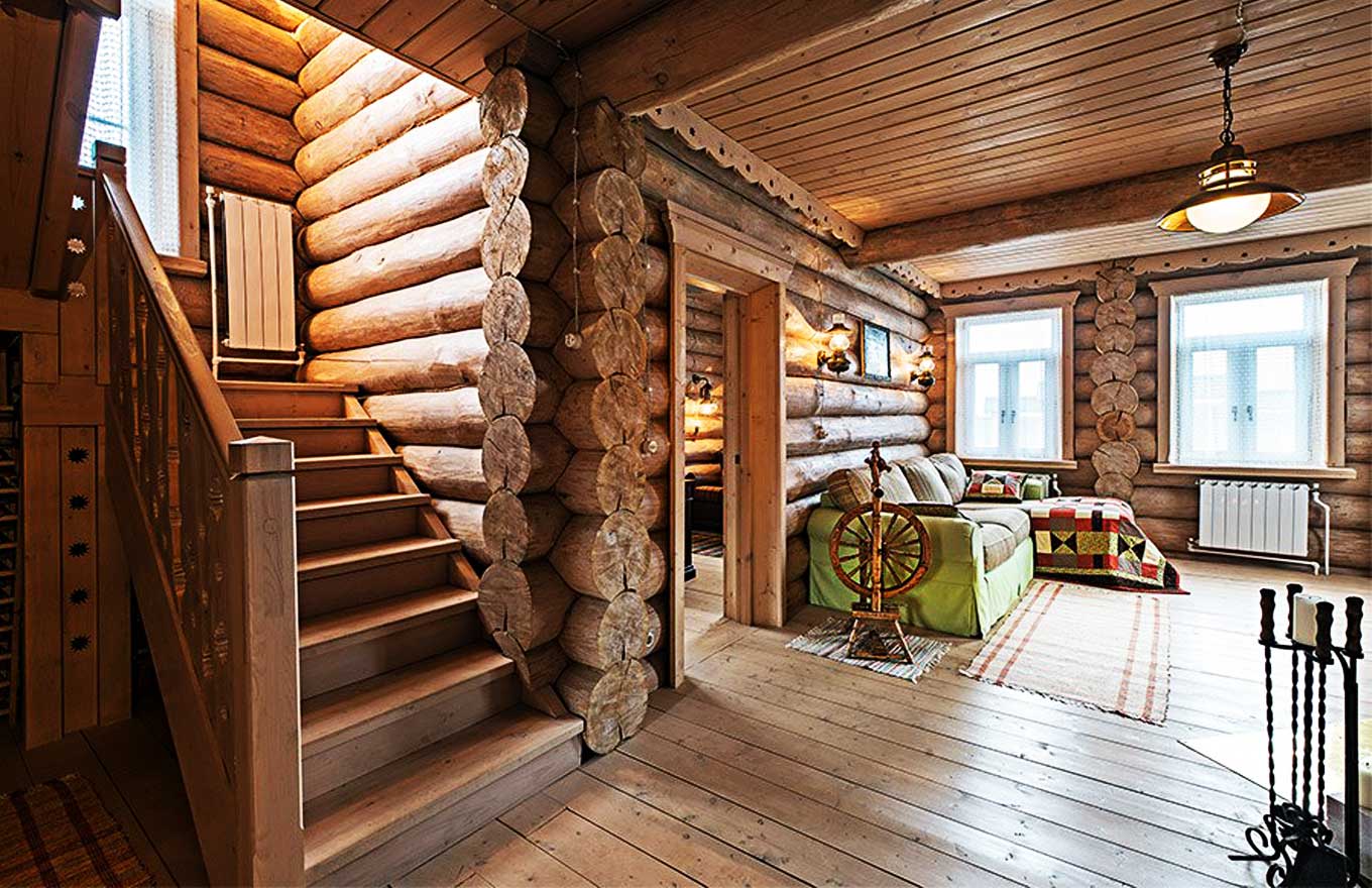 Масса материала. В доме из бруса и брёвен лаги пола и перекрытия между этажами деревянные, поэтому нежелательно нагружать эти участки конструкции лишним весом. Под большой нагрузкой деревянные элементы могут прогнуться.