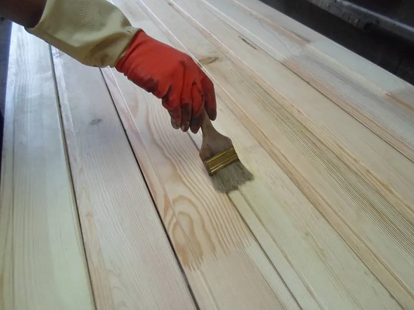 Для защиты от солнечных лучей и влаги, а также для сохранения первоначального цвета древесину обрабатывают специальными защитными составами для внутренней отделки дерева или акриловым лаком на водной основе. Перед нанесением покрытия вагонку при необходимости шлифуют и протирают от пыли. Покрытие наносят в два-три слоя.