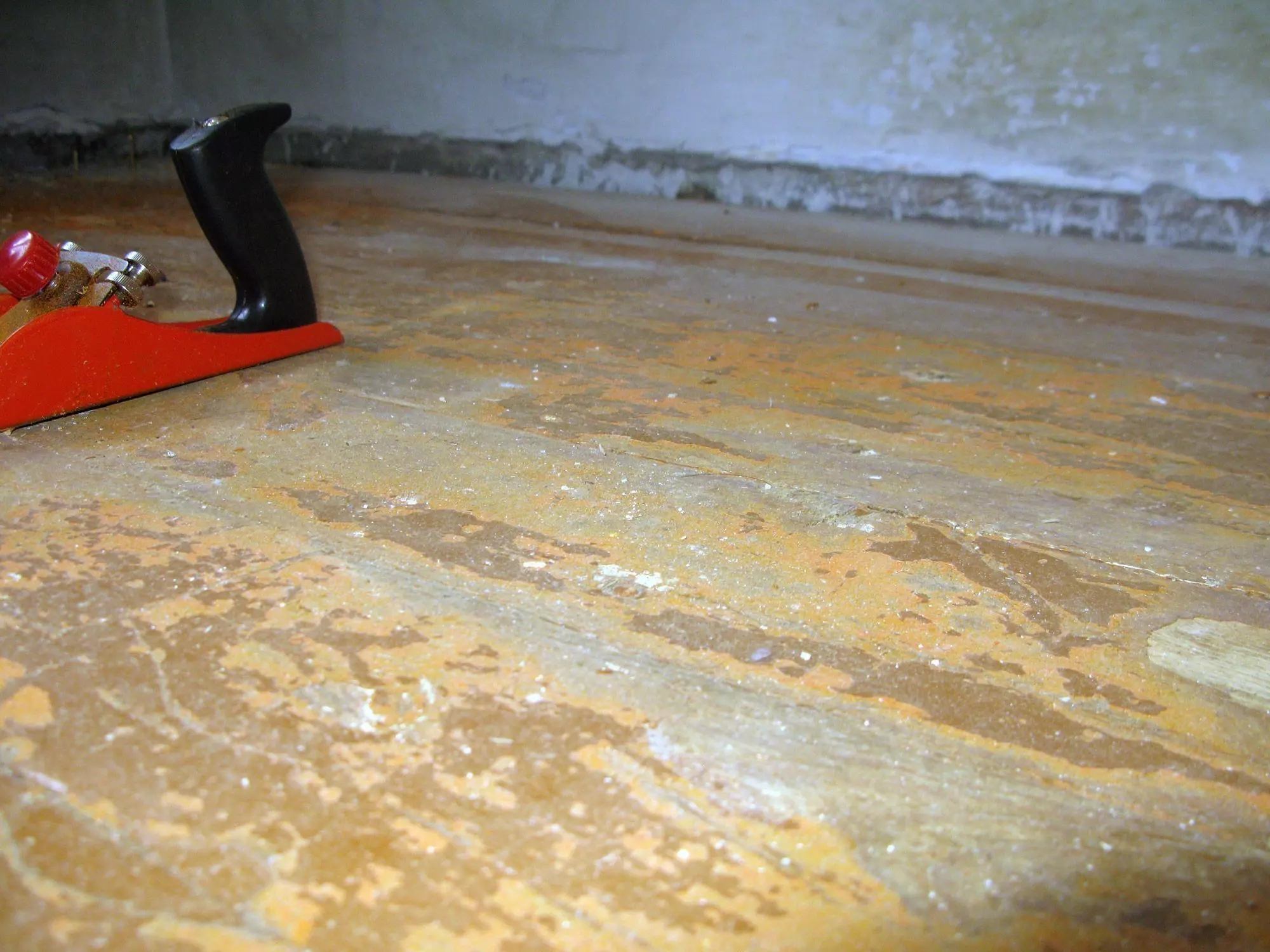 Перед тем, как выровнять деревянный пол с помощью ручного или электрического инструмента, нужно посадить шляпки гвоздей или шурупов на глубину большую, чем толщина предполагаемого для снятия слоя дерева.