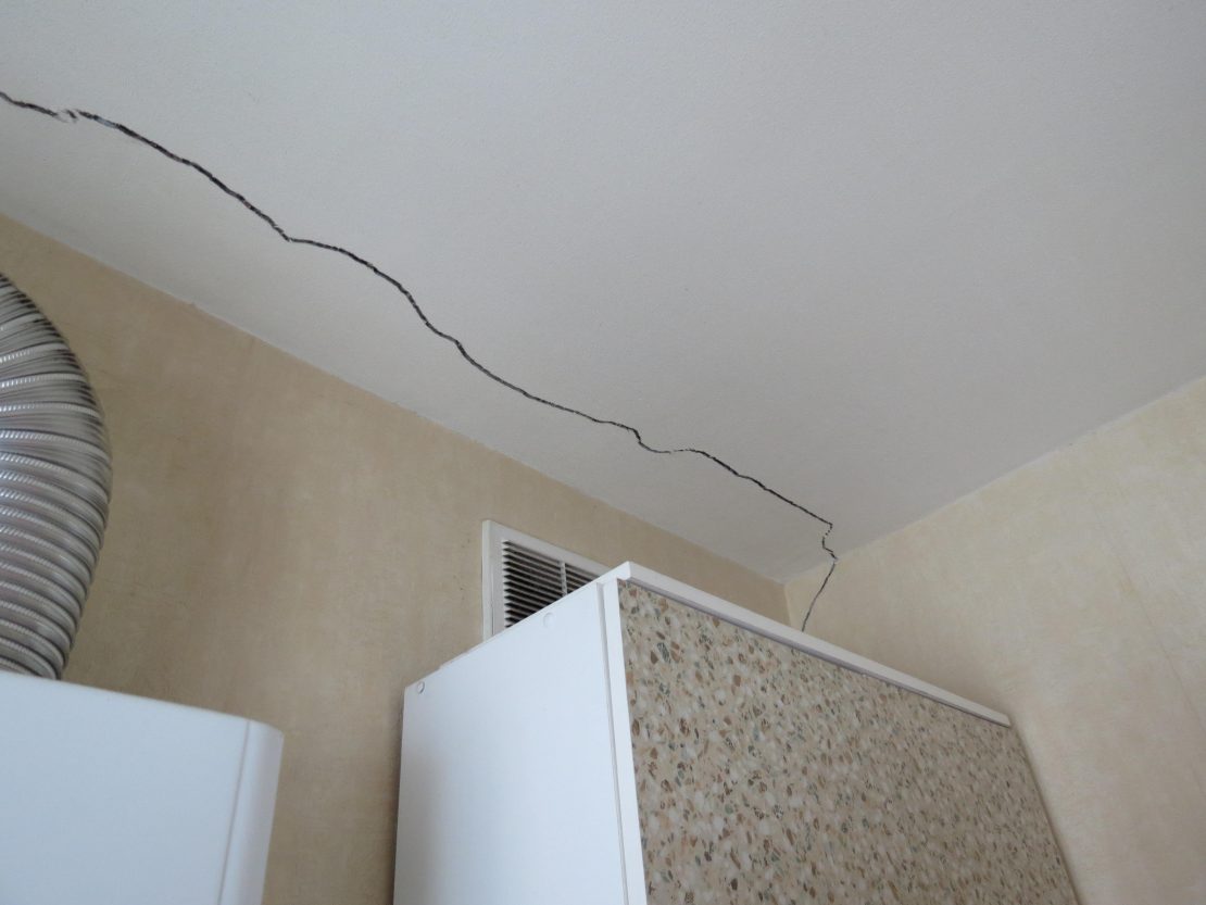 Конструктивные трещины возникают в материале потолка от воздействия на него избыточных нагрузок, превышающих допустимую несущую способность перекрытия. Часто причиной его деформации является вес тяжелого оборудования, ударные нагрузки, взрывы, землетрясения и прочее.