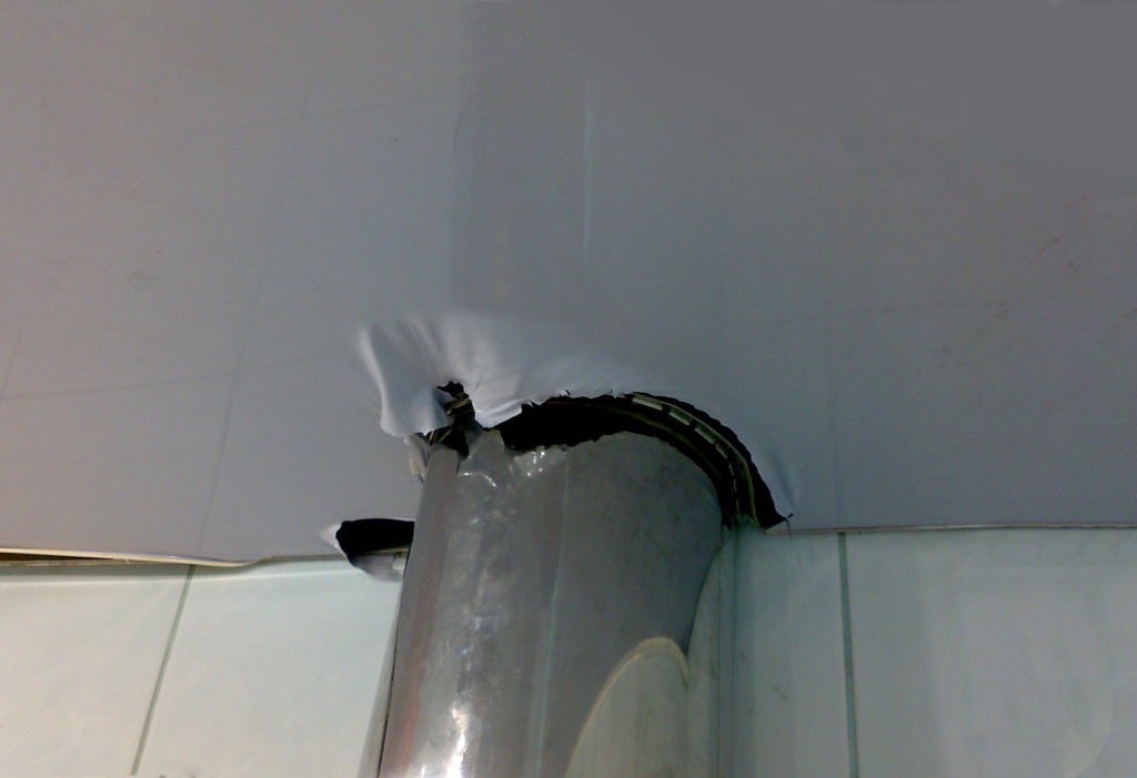 Низкокачественные материалы и комплектующие — ещё одна из причин появления дыр в натяжных потолках. И опять же, если для установки натяжного потолка вы нанимали фирму, не раздумывая, можете обращаться к ним с претензией. Если же работами вы занимались самостоятельно, то при исправлении дефектов обратитесь для консультации к специалисту, который поможет подобрать материалы и комплектующие других производителей. Следующие повреждения натяжного потолка совсем не относятся к гарантийным случаям, а являются следствием неправильной эксплуатации, а порой и забавной оплошности. Потолочное полотно даже самого высокого качества (будь оно хоть тканевым, хоть из ПВХ-плёнки) не застраховано от подобных дефектов.