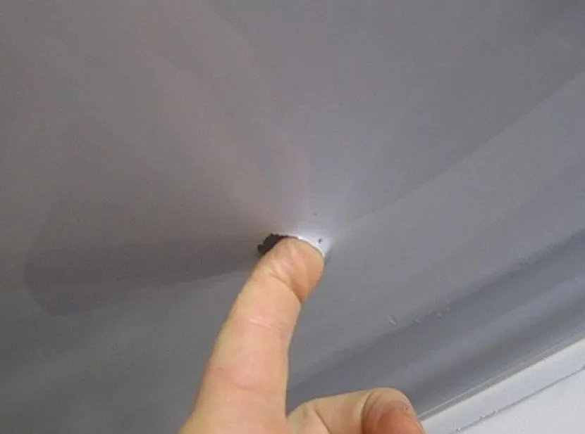 Устранение повреждений на натяжном потолке зависит прежде всего от характера и размера дырочки или разреза, а также от материала. Небольшие дырочки проще заделать на тканевом потолке, а большие разрезы легче отремонтировать на ПВХ-материалах.
