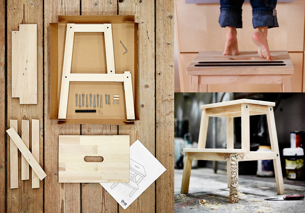 Сборка высокого табурета-стремянки выполняется в три этапа: