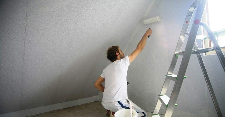 Бетон, частично оштукатуренные или шпатлеваные стены. Такие поверхности обладают высокой пористостью, они не будут идеально белыми даже после 5 слоев краски на водяной основе. Их лучше предварительно зашпаклевать и загрунтовать. Бывает, старые бетонные стены шелушатся и крошатся, такие нужно предварительно покрыть укрепляющей грунтовкой,
