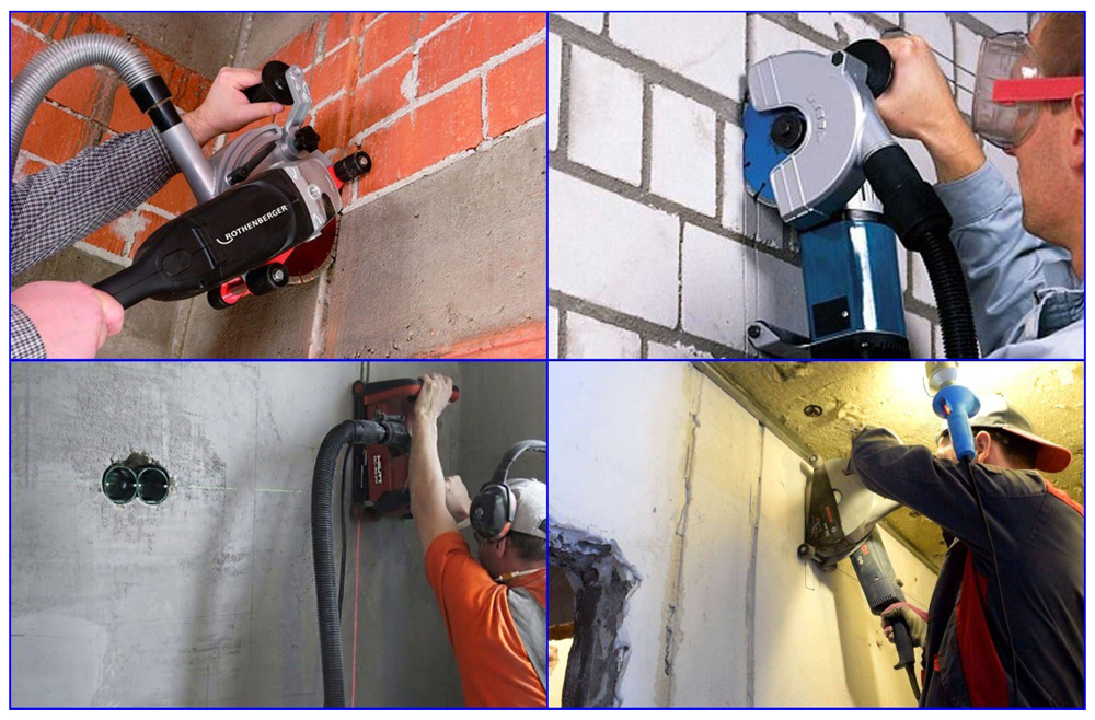 Рис. 4 Штробление стен штроборезом и болгаркой