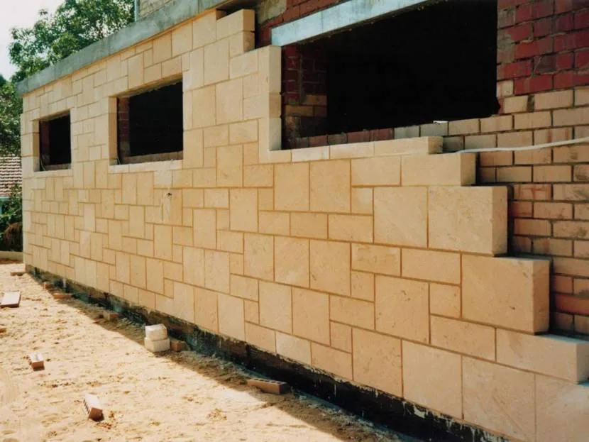 а можно вести самостоятельно: благодаря большим размерам камня кладка из него выполняется довольно просто и не требует серьезных навыков, как в случае с керамическим кирпичом. Нет особых требований к фундаменту: можно использовать различные его виды, в зависимости от типа почвы, характеристики рельефа и т. д. Если нет уверенности в качестве основания, лучше делать фундамент монолитным или использовать фундаментную плиту. Также поверх стены